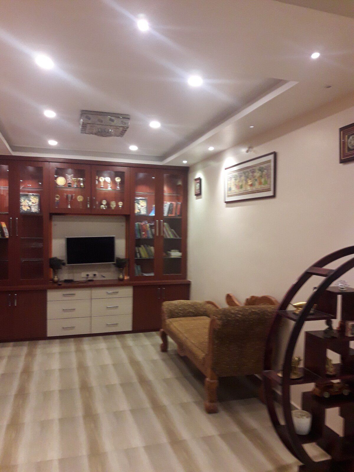 O quarto no topo das escadas é uma mistura de elegância tradicional e conforto moderno. Os móveis à moda antiga e as recordações encantadoras datam de dias passados com uma história repleta de grandeza . O terraço é uma surpresa tranquila no meio da movimentada cidade de 1000 anos; e percebe como partilhamos a fronteira com a casa e o museu de Netaji Subhas Chandra Bose e outros lugares históricos ao redor. Não há estacionamento disponível para bicicletas ou carros