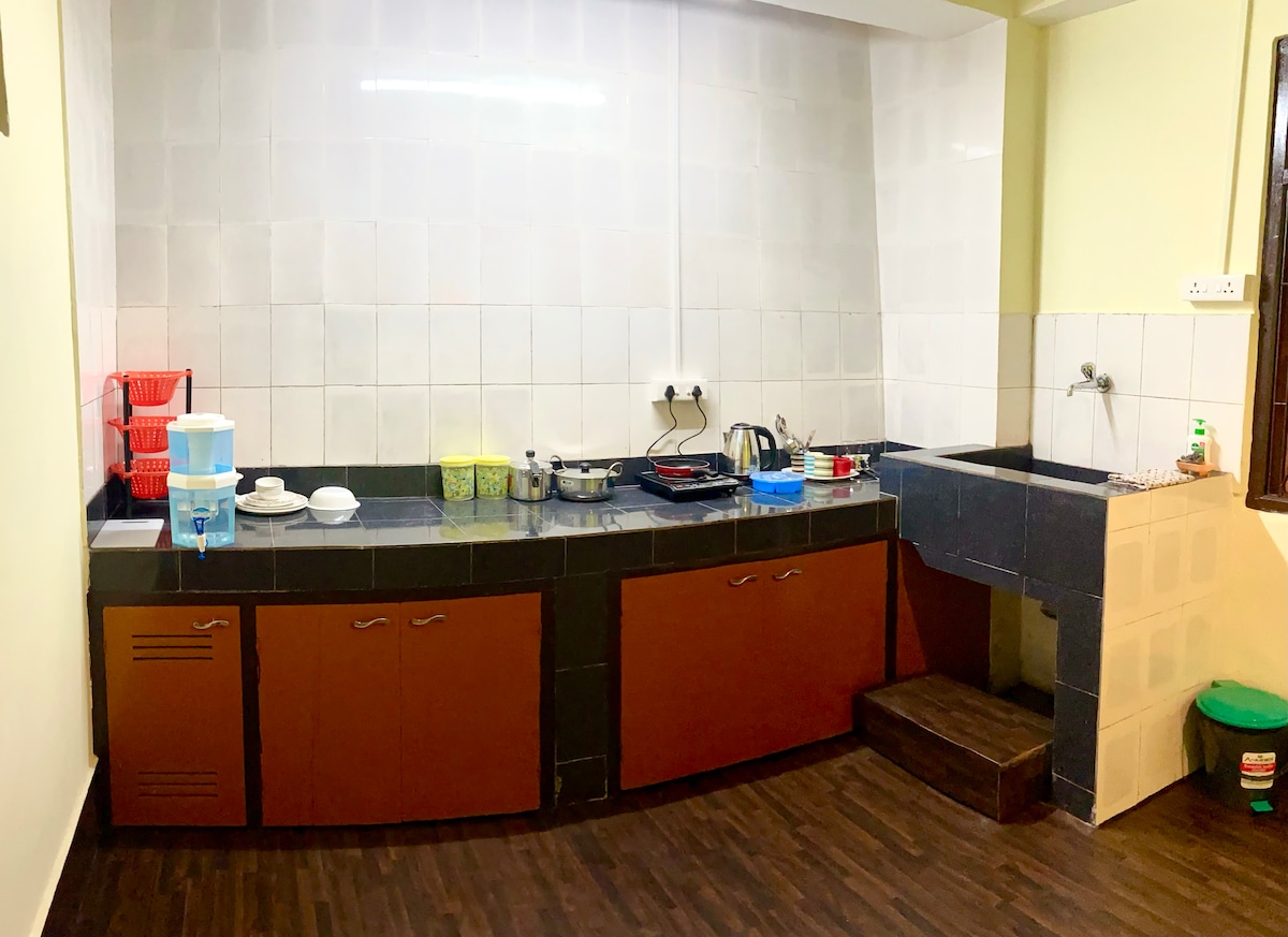 A nossa oferta é um apartamento totalmente mobilado com uma cozinha funcional, simples e confortável para ficar. É ideal para um casal ou uma família de 5 membros. Proporciona a privacidade e o conforto da sua própria casa, é uma casa longe de casa. A localização é tranquila e segura a cerca de meia hora de carro da margem M.G, das cataratas de Jhakri e do centro de parapente. Está bem ligado por taxies e não tem nenhum problema de conectividade. Se conduzir até Sikkim, há um lugar de estacionamento para o seu carro.