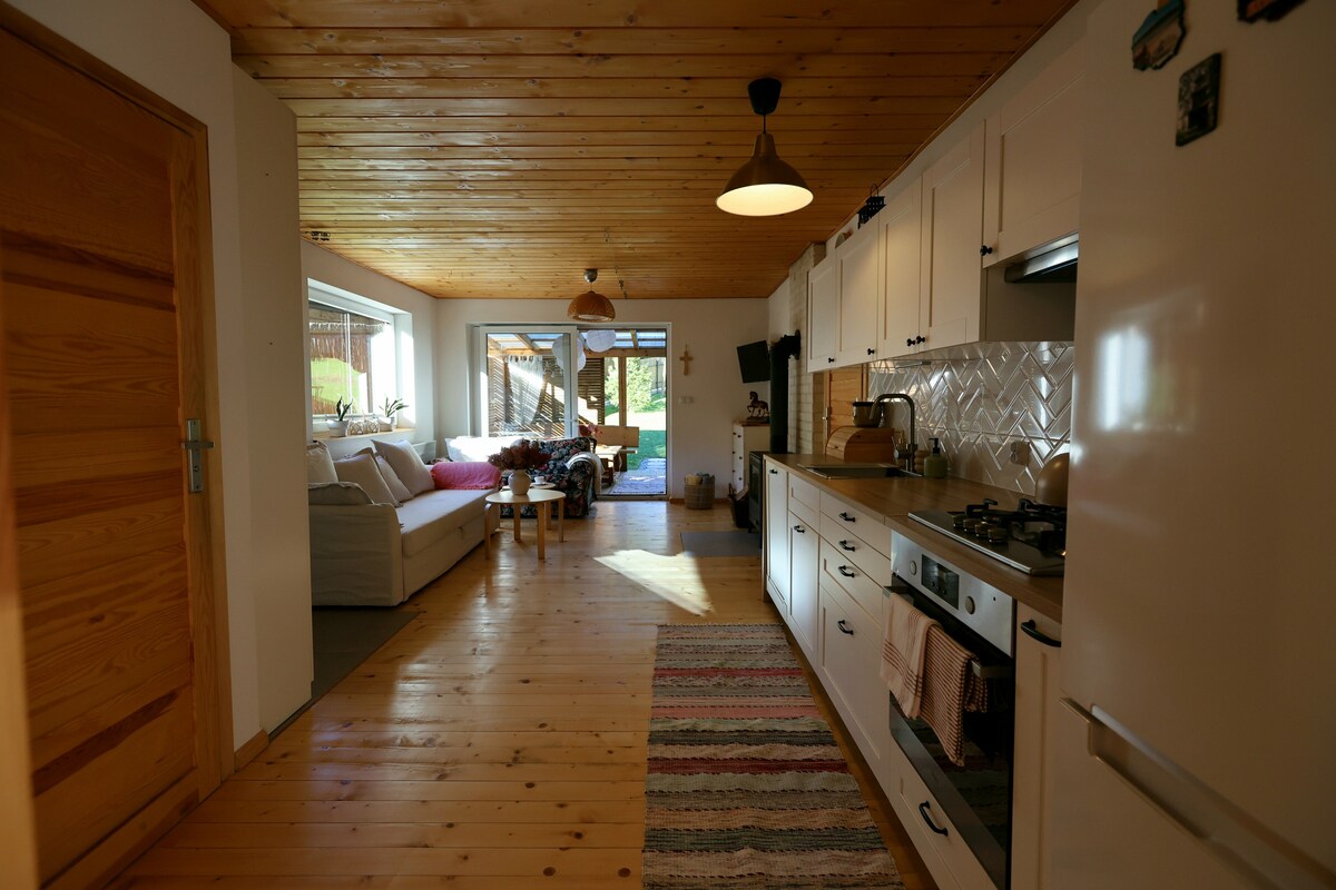 Tenho uma aconchegante casa de madeira para oferecer. A vantagem da casa é o espaço, o terraço de pedra e o lugar para acender fogueiras e fazer churrascos. A casa de campo única tem uma atmosfera única e é decorada com carinho, você pode se sentir em casa. No andar de baixo há uma pequena sala de estar com um sofá confortável onde você pode relaxar, ler, assistir TV (biblioteca disponível) Na sala de estar há um baú de madeira com tapete de ioga, faixas, blocos e cobertores.