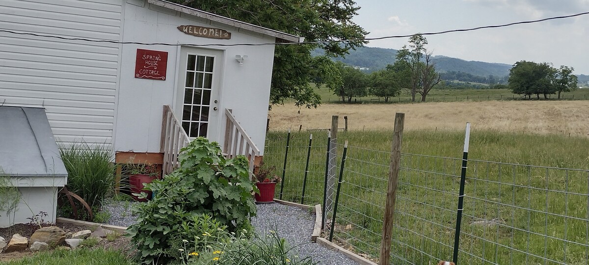 Farm Stay, escape to the country. Updated historic cottage is in a quiet country setting in the heart of the Shenandoah Valley, rural yet not remote. Enjoy a time of peaceful renewal. Relax overlooking the pastures and beautiful garden common space in the backyard retreat including a hot tub. Studio apartment with queen bed and additional futon sofa. Kitchenette is equipped with refrigerator, microwave, coffeemaker and dishes. Breakfast includes muffins, granola, and coffee.