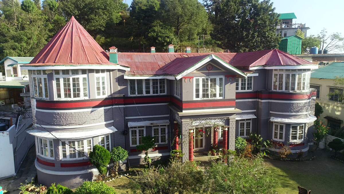 Uma GRANDE VILA DE PATRIMÔNIO BRITÂNICO com uma vista PANORÂMICA/INCRÍVEL do jardim, aninhada no topo de uma montanha, mas localizada no centro da cidade, na Mall Road. É uma casa de 150 anos com grandes quartos arejados, lareiras, móveis antigos e bela arquitetura colonial. Recentemente renovado para oferecer todas as comodidades modernas, tem um jardim verdejante na frente e um pátio encantador nos fundos da casa. A casa é mais conhecida como JAIN HOUSE pelo povo da cidade de Solan.