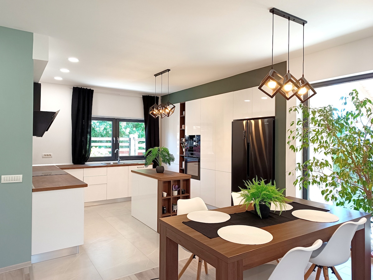 Se você está em uma visita de curta duração, férias em família ou em uma viagem de negócios, bem-vindo à minha casa de jardim moderna e encantadora, um lugar único para ficar em Timisoara. Rodeado por jardins verdes, aqui você encontrará prazer em uma casa moderna, com um toque suave de natureza e design de interiores de qualidade. A Garden House também é ótima para uma alternativa de trabalho em casa ou para atividades em família. Estamos tomando grandes medidas de higiene, ventilando, limpando e desinfetando adequadamente as superfícies após cada hóspede.