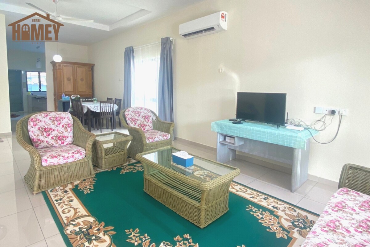 A Suria Homestay compreende uma espaçosa área de estar e jantar no andar de baixo e 3 quartos no andar de cima, cada um com o seu próprio ar condicionado e casa de banho anexa. Instalações E comodidades para 8 hóspedes * Portão automático * Cofre para chaves * 2 parques de estacionamento * 1 cama queen size * 6 camas de solteiro * Aquecedor de água quente e bidé * Conjunto de sofá * Smart TV de 50" * Wi-Fi * Mesas de jantar e cadeiras * Frigorífico * Forno de micro-ondas * Dispensador de água mineral Coway * Chaleira * Copos, pratos, talheres * Máquina de lavar roupa * Ferro de engomar * Secador de cabelo * Espelho