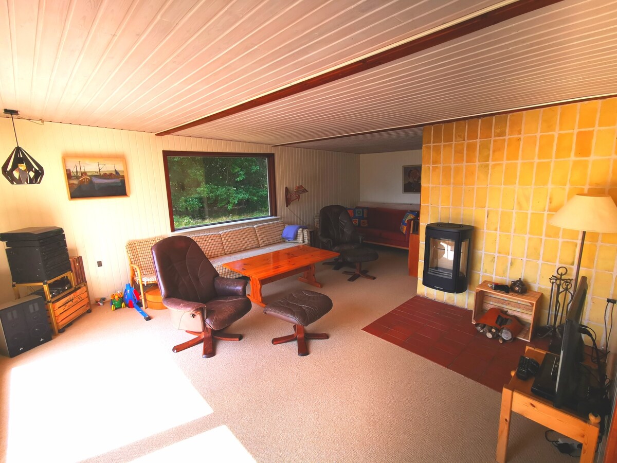 Hyggeligt vintage hus med brændeovn og havudsigt
