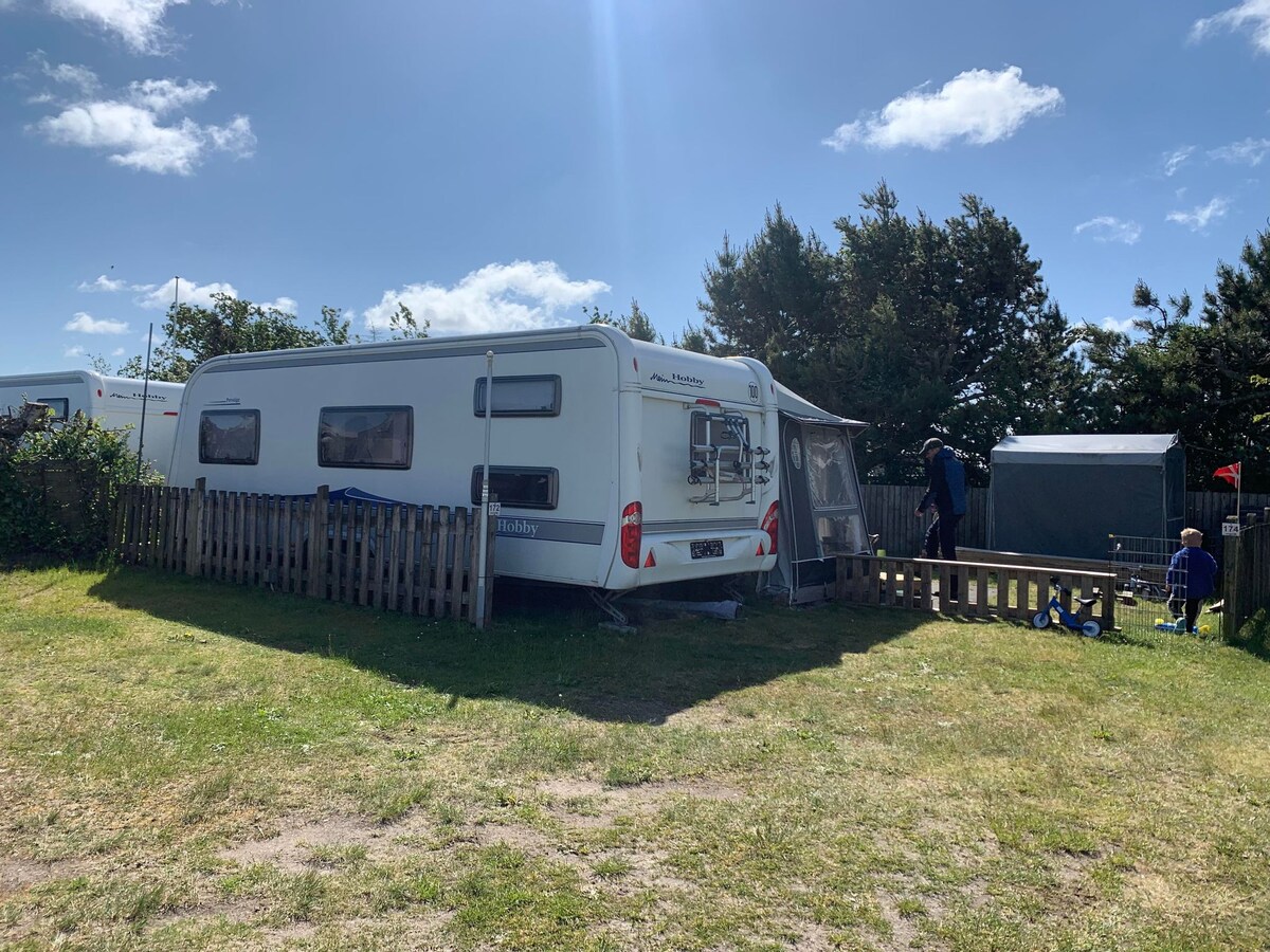 Caravana encantadora acomoda de 4 a 5 pessoas, para alugar num acampamento idílico em Thyholm, com vista para o nascer do sol a leste sobre o Limfjord. A caravana está mobilada com duas camas individuais com colchões de luxo numa extremidade e um grupo duplo/sentado na outra. O toldo tem um confortável sofá reclinável, uma mesa de jantar com boas cadeiras macias e um agradável terraço de madeira virado a leste, onde o sol da manhã do leste sobre o Limfjord pode ser apreciado com uma chávena de café. Há também a possibilidade de cozinhar de forma leve no toldo.