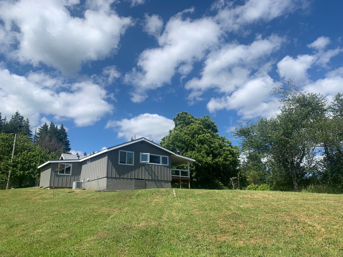 Cabana moderna deslumbrante em 16 acres arborizados! O seu próprio mundo privado a 15 minutos de Stevenson e a 45 minutos de Portland! Sala de estar aberta, jantar, cozinha com controlo deslizante para o deck e dois andares de vidro com vista para os magníficos cedros e riacho sazonal! Desfrute da grande banheira de imersão com vista após uma longa caminhada. Dois beliches e casa de banho completa em nível inferior à luz do dia levam ao deck e ao chuveiro ao ar livre! Desfrute de um jantar na varanda ou junto à lareira. ** Banheira de hidromassagem a lenha disponível por uma taxa extra **