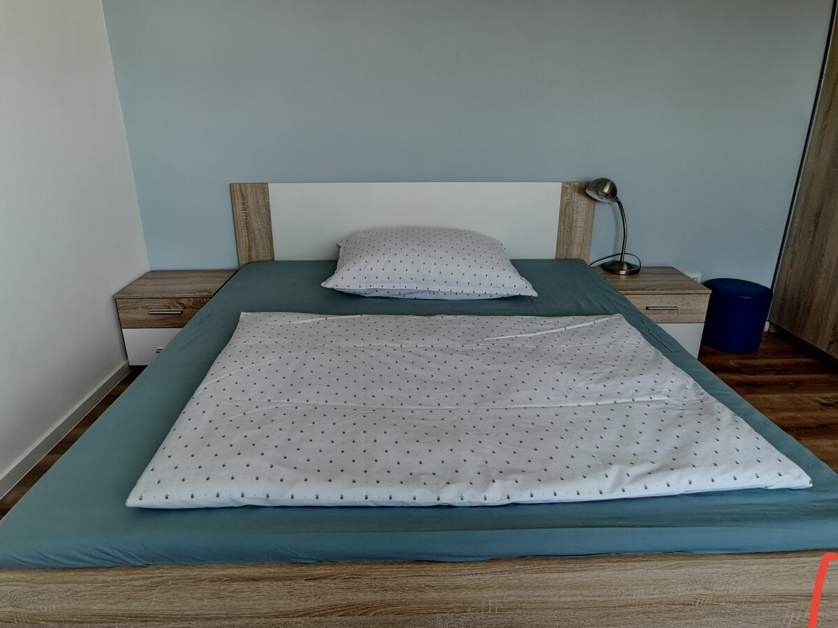 Novo apartamento moderno numa zona ribeirinha tranquila de Praga, a apenas 10 minutos de elétrico do centro da cidade. Dispõe de um quarto grande, uma espaçosa sala de estar com um sofá-cama, uma cozinha totalmente equipada, uma casa de banho e uma grande varanda. Os hóspedes desfrutam de Wi-Fi rápido, persianas elétricas, um lugar de estacionamento privado e toques atenciosos, como um presente de boas-vindas com cerveja e lanches locais. Ideal para casais, viajantes de negócios, famílias pequenas e entusiastas do golfe. Tranquilo, moderno e festivo! Tem um ar condicionado portátil.