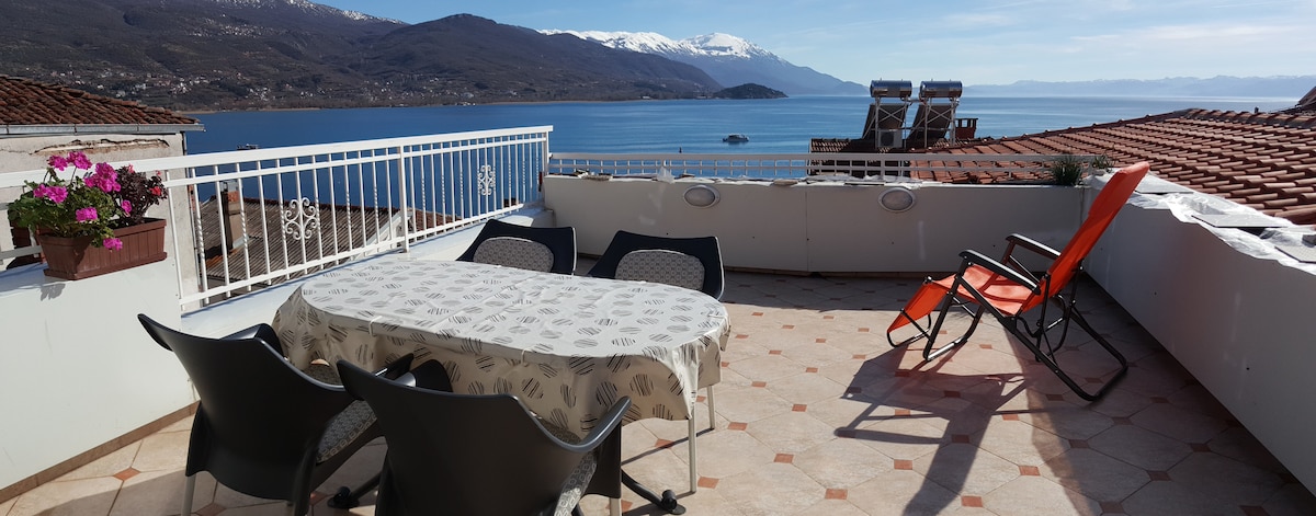 Apartamento à beira-mar localizado no sopé do Parque Nacional de Galicica, oferecendo uma vista magnífica sobre o Lago Ohrid. O apartamento tem ar condicionado, aquecimento, acesso Wi-Fi gratuito, secador de cabelo, geladeira, TV de tela plana, varanda espaçosa, jardim e estacionamento gratuito.