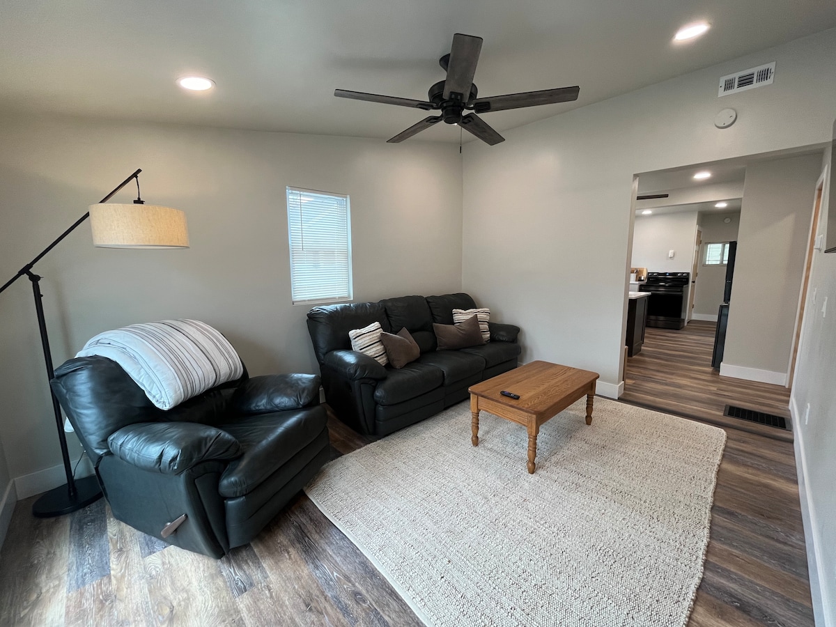 O espaço é um apartamento cave dedicado. O espaço tem a sua própria porta e fechadura, mas os hóspedes entrarão através de uma entrada de garagem partilhada. A decoração está limpa e moderna. Há uma pequena kitchenette, dando aos hóspedes a capacidade de comer ou fazer café. A acolhedora área de estar é um ótimo lugar para relaxar durante a noite ou desfrutar de uma chávena de café da manhã. O apartamento fica abaixo do nosso espaço de estar. Embora façamos o nosso melhor para manter o ruído ao mínimo, irá ouvir crianças/passos durante o dia.