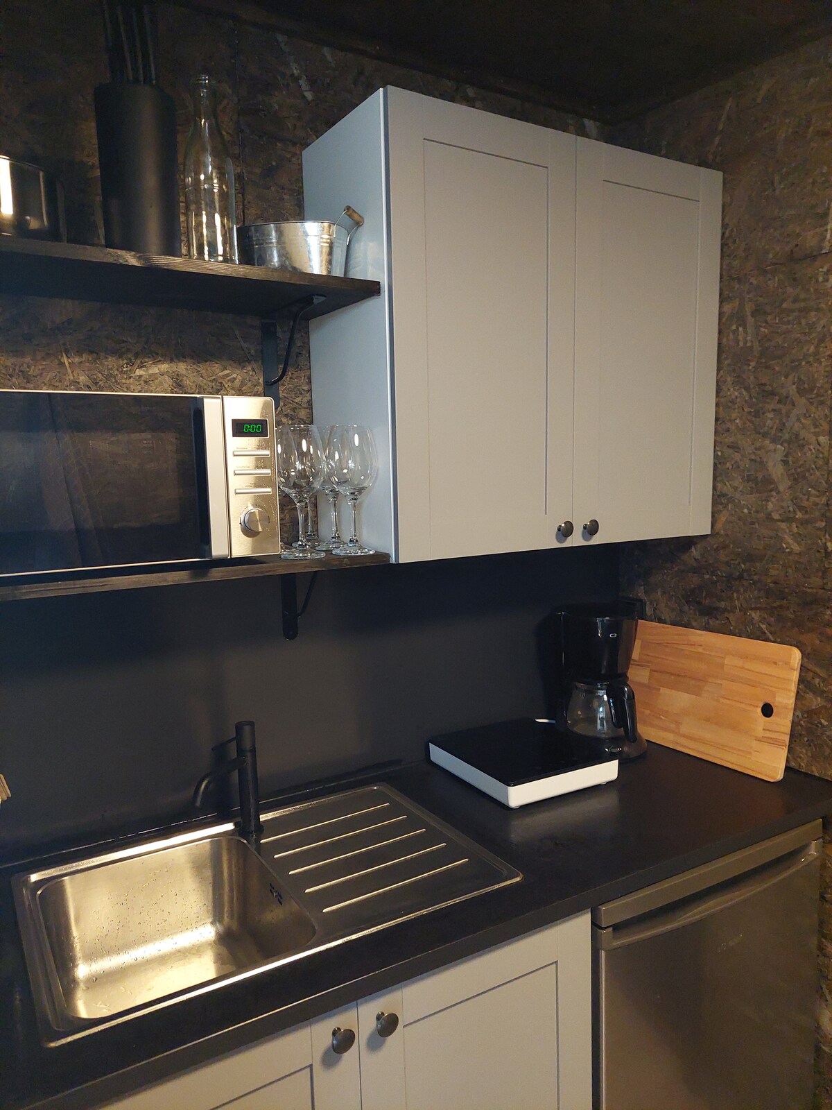 Pequena casa de luxo com vista deslumbrante para o mar. Da sauna, são apenas alguns passos até ao mar, onde pode dar um mergulho no verão e no inverno! A pequena cozinha está equipada com microondas, frigorífico, fogão de indução e cafeteira. Na casa há uma máquina de lavar roupa.