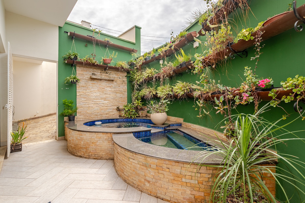 # Casa de Campo com belo Jardim e piscina. Suíte com banheira de hidromassagem e varanda para um café da manhã e refeições ao ar livre em contato com a natureza. Excelente para descanso e para repor as energias e ótimo para famílias. Garagem coberta para dois carros e um espaço convidativo a leitura e contemplação com barulho da fonte ao fundo.