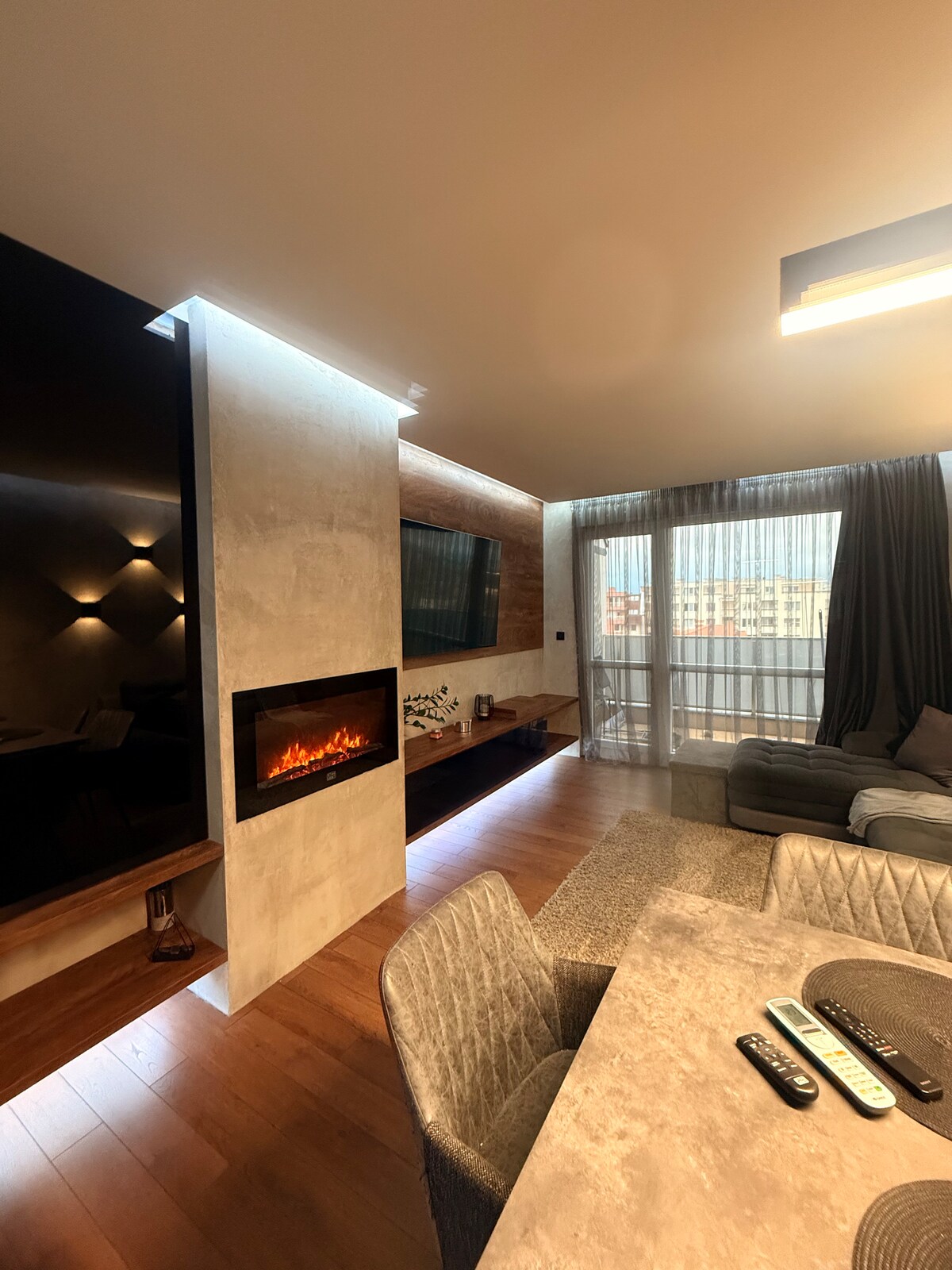 The apartment is sun-filled and beautifully furnished. It is located in an upscale newly built luxurious building in the rapidly developing neighbourhood of "Druzhba" in Sofia. Magnificent view from the 15th floor, fully equipped kitchen, 500 mbit/s Internet, bathtub, blackout curtains + 6-chamber joinery guarantee the perfect environment for work, entertainment or rest. Luxury meets practicality. Private parking space. It is close to subway station.