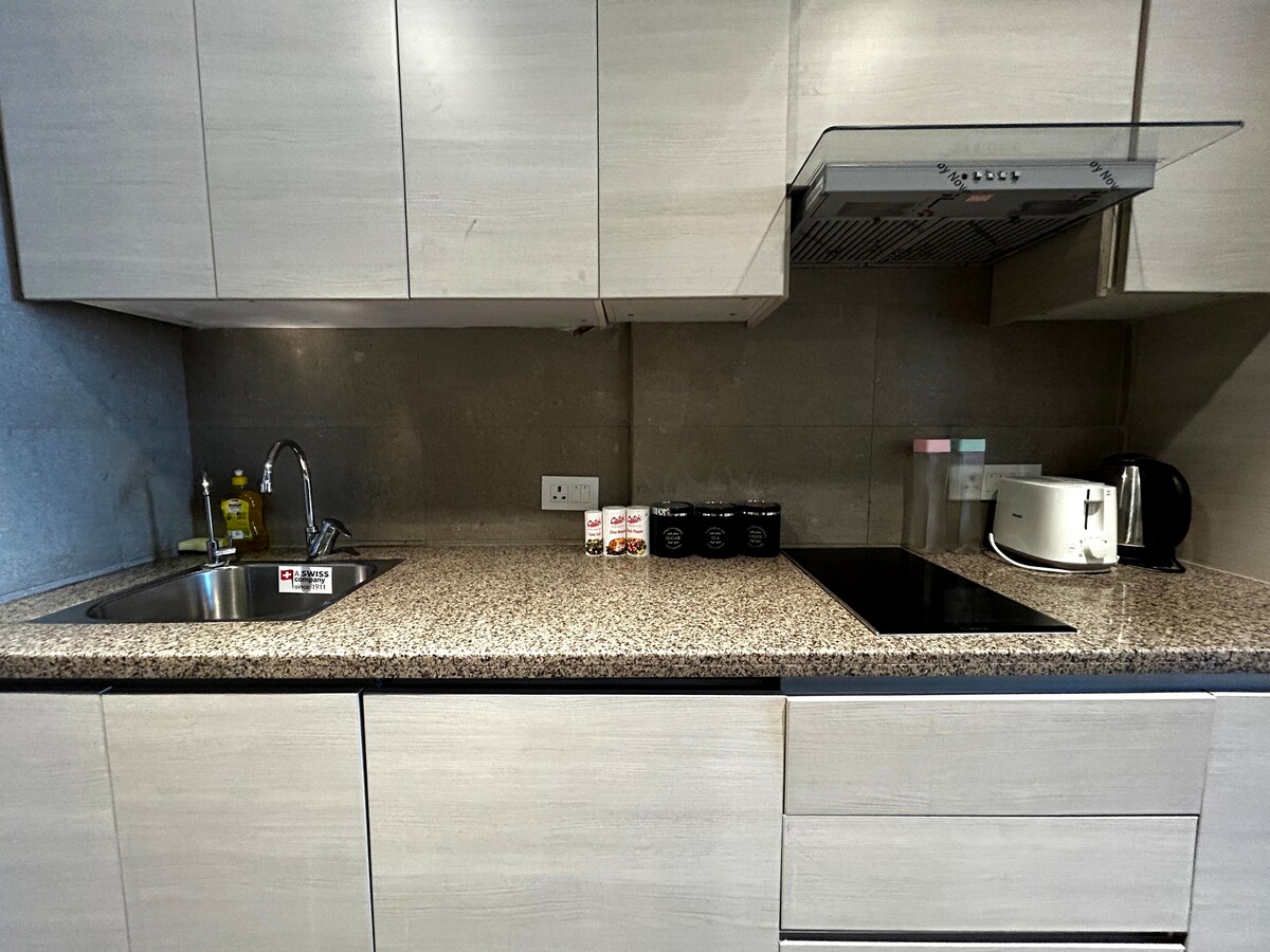 Modern 1BHK in Central Park Flower Valley. Sunlight fills the bedroom with a king bed and calm interiors. The balcony is a little wild, making it perfect for fresh air, chai, or a smoke under open sky. Kitchen is fully set for basic cooking. Smart TV, Wi-Fi , AC + inverter backup keep you comfortable. Great for business trips, short stays or slow weekends. A peaceful pocket of soft luxury in Gurugram. Soft daylight in every corner feels designed to breathe with a beautiful Aesthetic pool View.