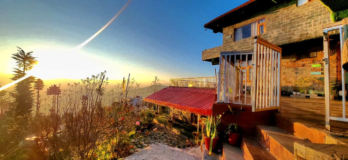 Uma bela casa de campo vermelha com uma vista deslumbrante, enorme terraço aberto para festas e eventos, fogueira fornecida, piso de madeira, Mercado Kasauli nas proximidades (30 minutos). Experimente a natureza da forma mais incrível.