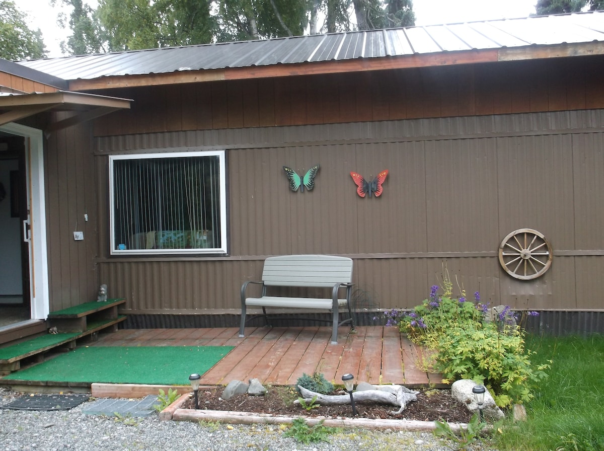 Esta casa está localizada em um bairro tranquilo e arborizado, a cinco minutos ao sul de Soldotna. Fica a 70 milhas de Homer e uma hora e meia de Seward. Fica perto dos rios Kenai e Kasilof. Há muito estacionamento para um barco, snowmobile ou reboque. Há alces e caribus na área e o quintal tem muitas variedades de pássaros. Há belos jardins na frente e atrás e gramados.