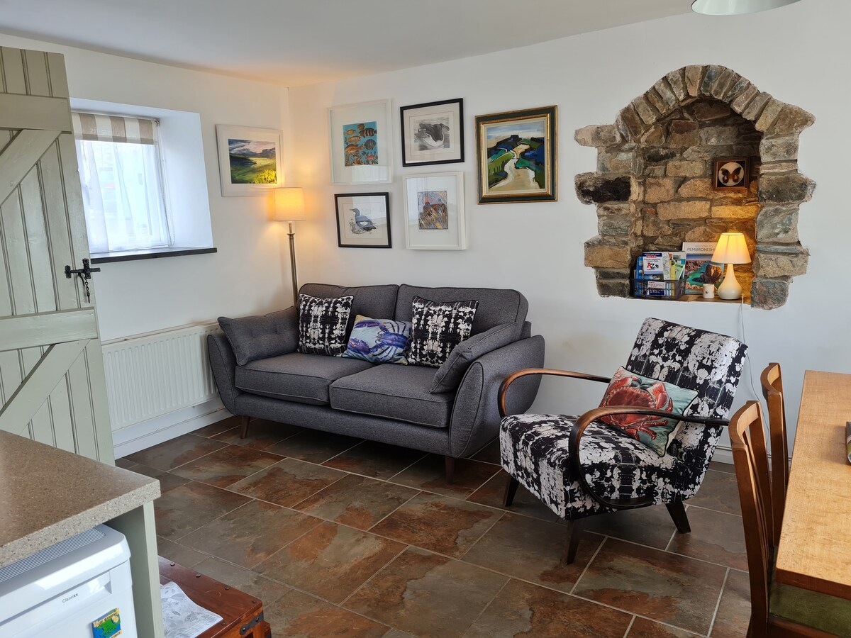 The Annexe situated in an outstanding location between Solva & St Davids is a character cottage with double bedroom, shower room and kitchen diner, furnished with style. A garden with patio, table & chairs surrounded by fields and distant sea views. Close to Pembrokeshire Coast Path, beaches, galleries, restaurants, pubs, cafes, music, history, boat trips, outdoor pursuits. Great location, you'll love the cleanliness & ambiance. Breakfast option, see below in more.