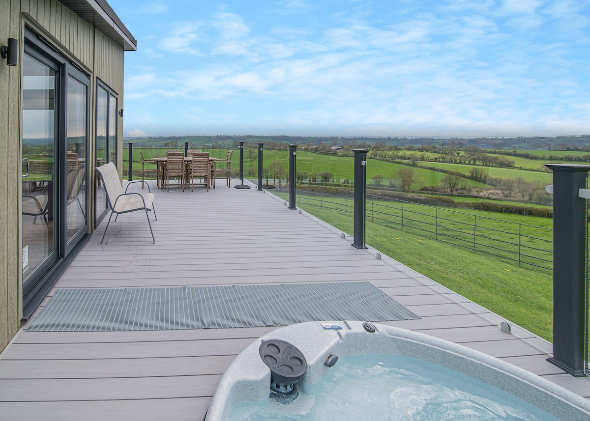 A lovely, light and spacious chalet on the Somerset Levels; finished to a high standard with its own private wood-fired hot tub on the veranda overlooking fields. Gas heating and a wood burner. (see house rules for wood burner usage) TOWELS ARE NOT PROVIDED Check in and out times sometimes can be altered to your needs . Ask when booking . The location is a mile away from a pub and 1.5 from a local supermarket. It’s down a track and very secluded . Don’t expect suburbia. No TOWELS provided .