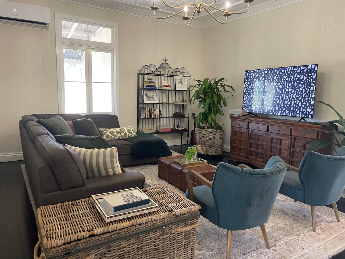 Espaço aberto tranquilo e fachada do rio Brisbane, a 45 minutos de Brisbane. A nossa casa em plano aberto de 5 quartos é ideal para os seus encontros de família e amigos. Também está disponível o nosso apartamento de vovó de 2 quartos. Um espaço para relaxar e fugir da agitação da vida agitada. Desfrute de um belo churrasco ao pôr do sol e bebidas na nossa espaçosa varanda com vista para o rio e para o campo. Esta localização é ideal para fazer uma pausa de fim de semana ou ficar mais tempo. Explore a cidade histórica de Ipswich, Willowbank Raceway, Esk e trilhos ferroviários.