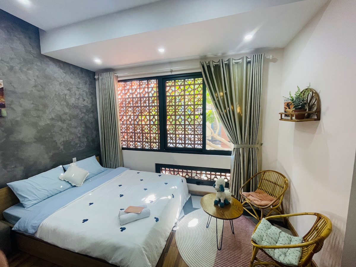 This luxurious apartment offers a separate bedroom and full kitchen, just 500m from My Khe Beach which is the perfect location for your getaway. The apartment is part of a sweet little 3-level villa. As part of its unique charm, you’ll find stairs instead of an elevator — a small detail that makes the villa feel even more homely and welcoming. With the slogan "May Home is where the heart is”, you’ll always feel warmly welcomed by our team, with a stay that’s comfortable and unforgettable.