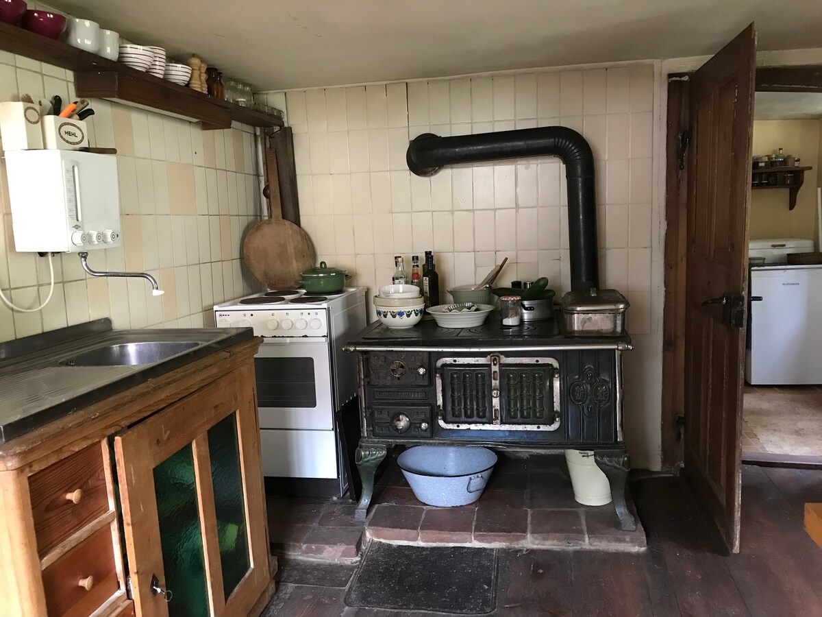 A antiga casa de madeira está localizada no meio de uma pequena vila na reserva da biosfera Bayrische Rhön. Você vai morar lá sozinho durante a sua estadia. Ela pode acomodar até 4 adultos, se 2 quartos forem suficientes. No entanto, ainda há um colchão de solteiro na sala de estar. São permitidos 1-2 cães. Bicicletas ou motocicletas podem ser guardadas no celeiro.