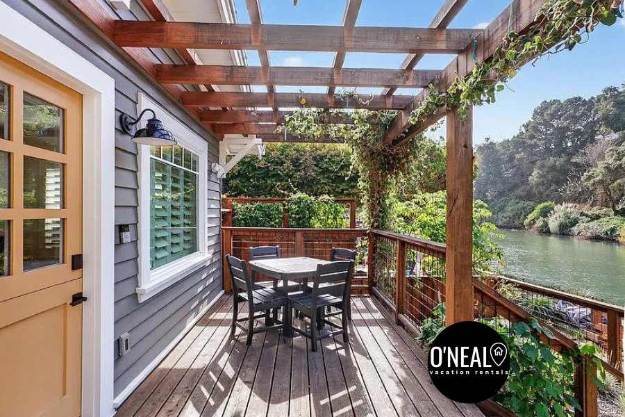 Our beautifully renovated 2 bedroom (Both upstairs) and 2 full bathrooms (One on the ground floor and one on the upper floor) along with a ground floor plush queen sleeper sofa and ground floor great room with dining for 7 plus a bar table separating the kitchen from the living room is in the perfect location. Walk to the beach, shops, restaurants, or a nice walk along the river. We are right in the Capitola Village. We hope you enjoy your stay. If you have questions, we respond promptly.