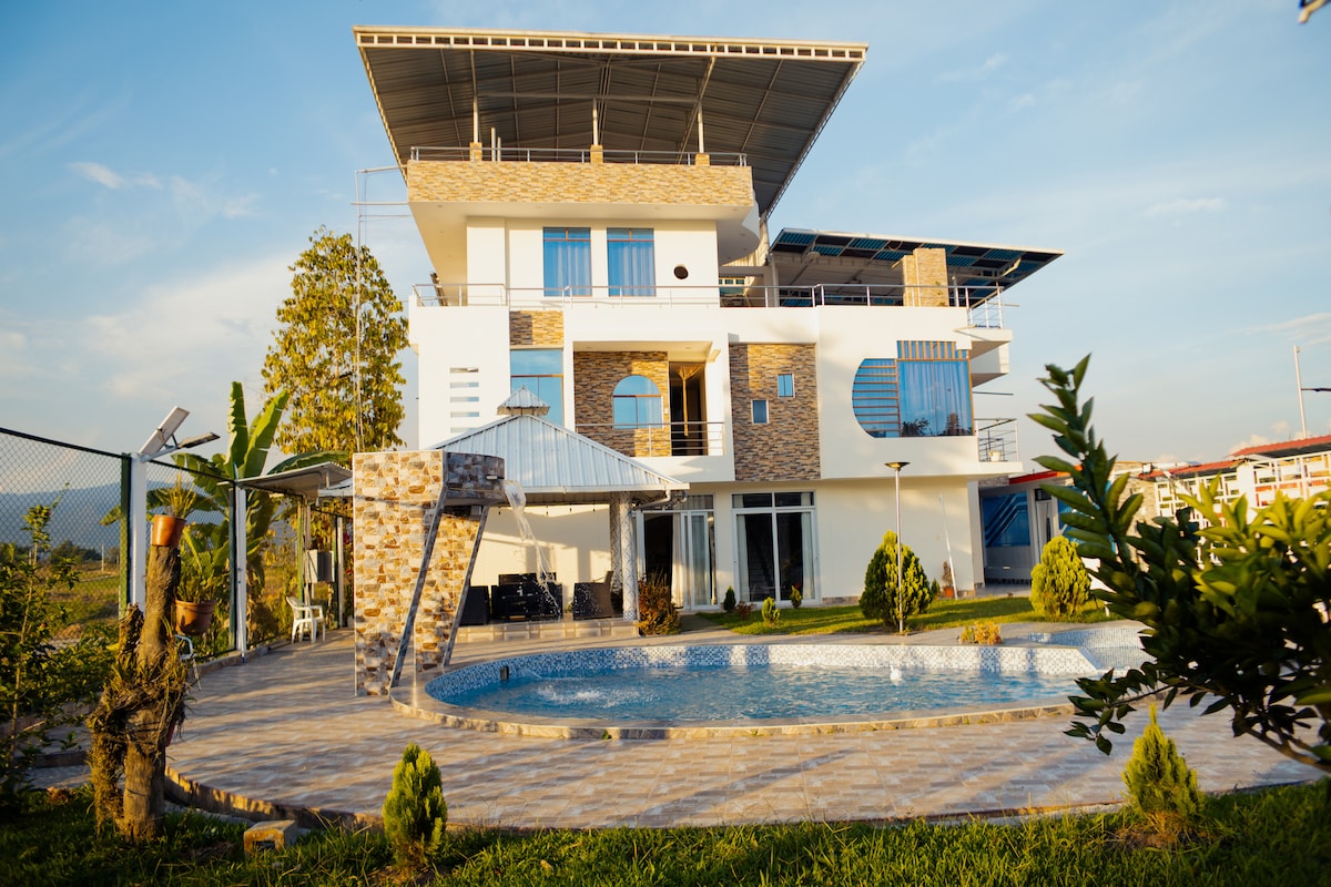 Desfrute de uma experiência elegante nesta casa com decoração trazida de Bali, Indonésia, um jardim botânico com uma coleção exótica de plantas tropicais, terraço e vistas panorâmicas do vale, composto por 3 quartos totalmente mobilados, a apenas 1 quarteirão e meio de todos os principais hotéis de prestígio da cidade, a 1 quarteirão dos mercados e a 3 quarteirões da praça principal da cidade. Estamos a apenas 18 minutos de Moyobamba e a 15 minutos de Tioyacu.