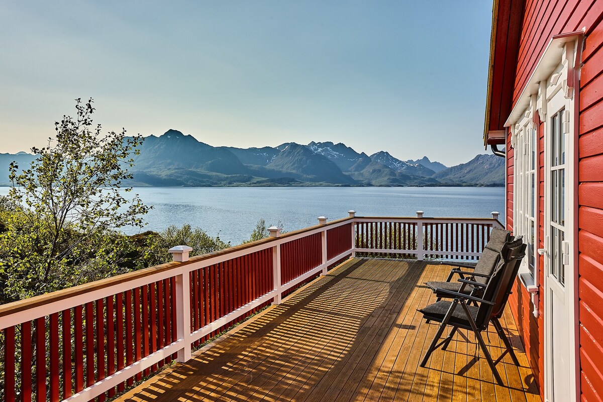 Relaxe com a família neste espaço tranquilo @homefraheime Cabana espaçosa (2019) com boas condições de sol e uma bela vista sobre o Eidsfjord em Vesterålen. 4 quartos, 2 salas de estar, cozinha, casa de banho e uma grande varanda com quarto de jardim dão-lhe muitas zonas para desfrutar do silêncio e das férias! A cabana também tem a sua própria banheira de hidromassagem que pode ser usada pelos nossos hóspedes. Base perfeita para umas férias exploratórias em Vesterålen/Lofoten, ou apenas para estar sozinho e relaxar. A casa de campo tem estacionamento próprio, espaço para 2 a 3 carros. (Não RV)
