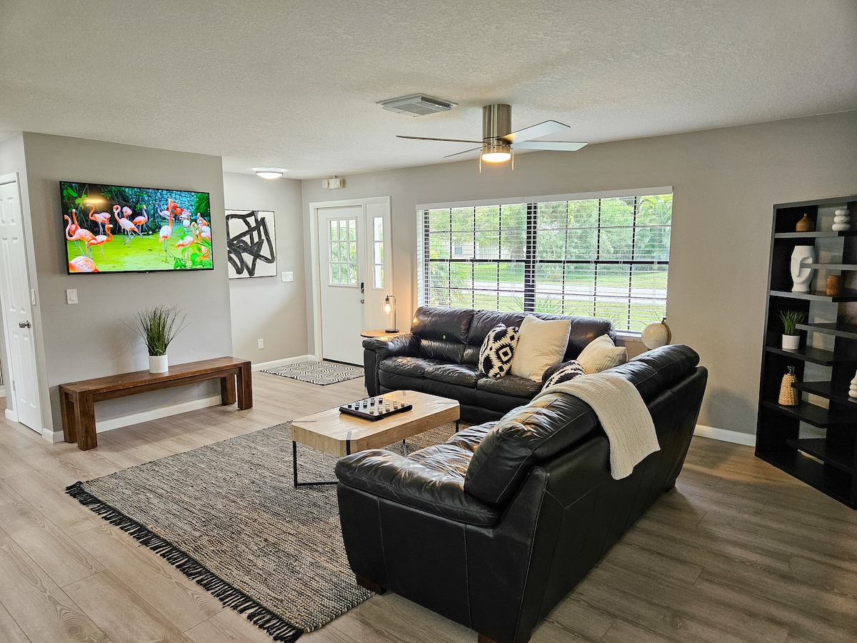 COCKTAIL POOL -FULLY FENCED BACKYARD 🏖️Enjoy a stylish experience at Our centrally-located Home. “East of 1 Surf House” is only 1 miles to South Beach, bike to beach ( bike provided) ,Our Beautiful Local Beach all you need from comfy beds,everything in your NEW Kitchen,Laundry Room, Living room , Outdoor Pergola & Hot/cold shower. Grocery Stores and Restaurants within a short drive or Walk. Art District and Riverside Park 5 minutes away. Vero Beach Marina 5 minutes away, Miracle Mile 5 minutes