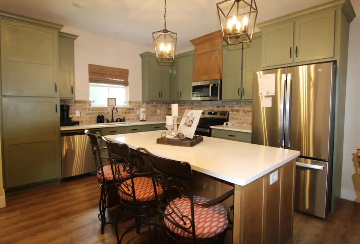 Desfrute de uma estadia moderna e encantadora nesta casa pequena e única. Esta casa está totalmente equipada com uma cozinha completa, sala de estar, quarto e banheiro completo. Para uma casa pequena, este lugar é impressionantemente espaçoso! Há amplo estacionamento, bem como uma adorável varanda da frente com vista para um lindo quintal cercado por bosques. Convenientemente localizado, perfeito para casais ou solteiros, atmosfera incrível em ambientes internos e externos.