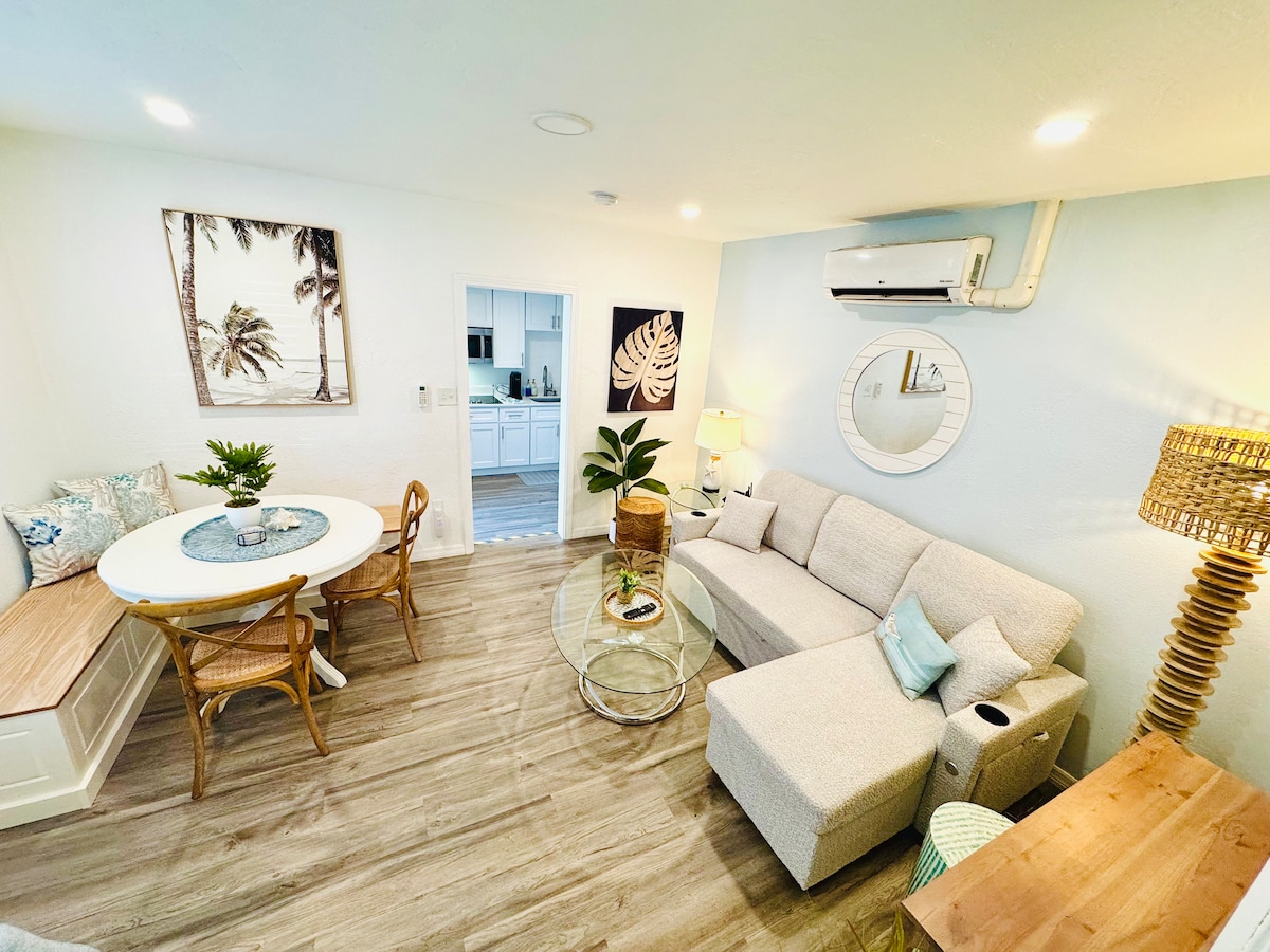Piscina relaxante com temática tropical, spa com área de churrasco e bar tiki. Estacionamento seguro privativo perto de suíte independente com acesso por código de entrada fechada. Localização central para todas as principais atrações e eventos da área. Café, compras e a uma curta caminhada dos populares restaurantes locais e bares, também dois parques à beira-mar para passear com cães na vizinhança. Apenas 2 milhas para a praia. Nosso resort longe de casa é o lugar perfeito para encontrar paz, tranquilidade e uma escapadinha de curta duração.