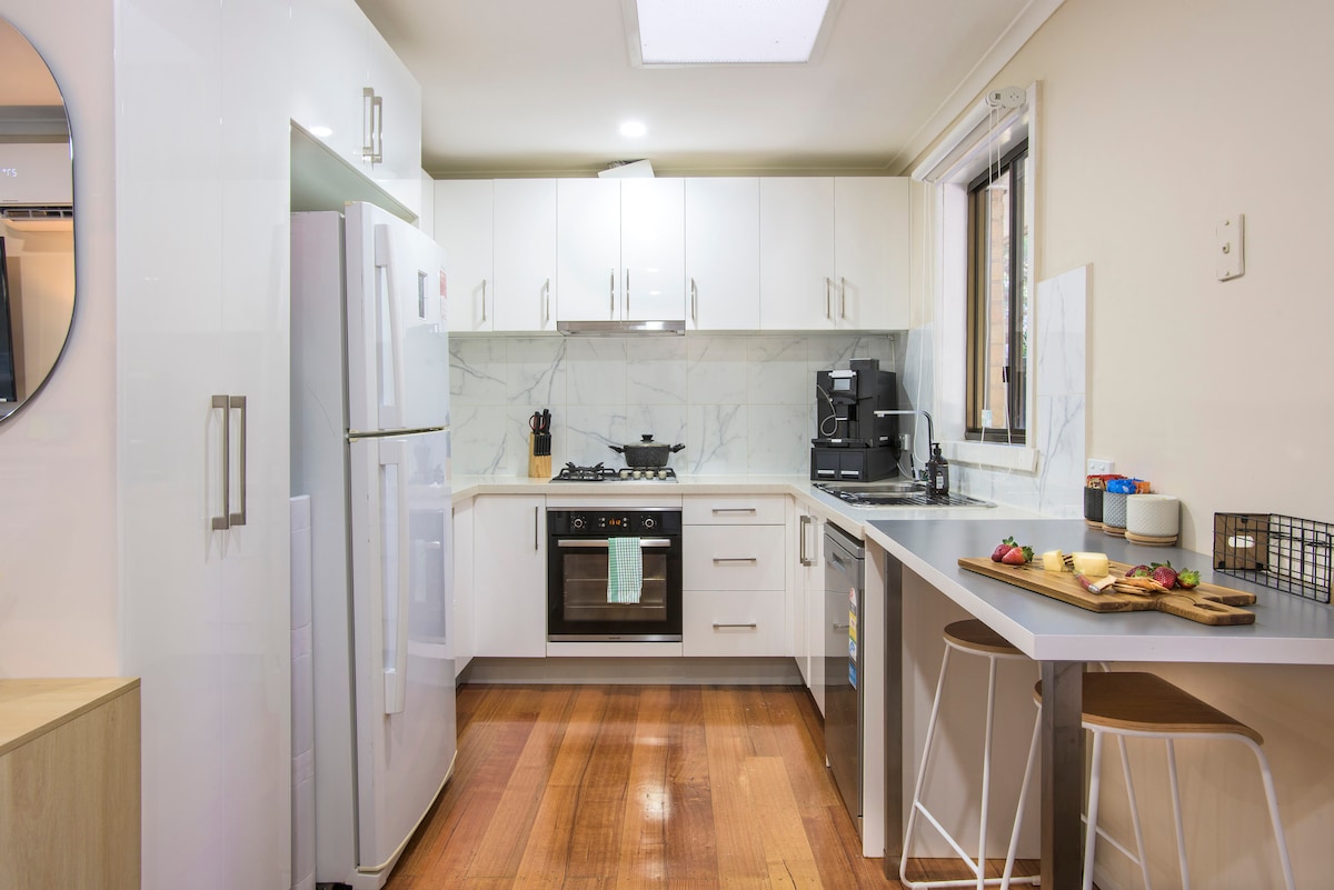 * Poupe muito: 20% de desconto para as férias escolares vitorianas * Esta casa de praia lindamente decorada e bem equipada em Rye, Victoria, é o refúgio perfeito para aqueles que procuram estilo e conveniência. Desfrute dos arredores deslumbrantes das árvores Moonah a partir do espaçoso deck privado, perfeito para uma churrasqueira ou aproveitar o sol. Localizada no coração da Península de Mornington, esta casa de praia fica a poucos minutos de Peninsula Springs, adegas, campos de golfe, cafés e praias à beira-mar e à beira-mar.