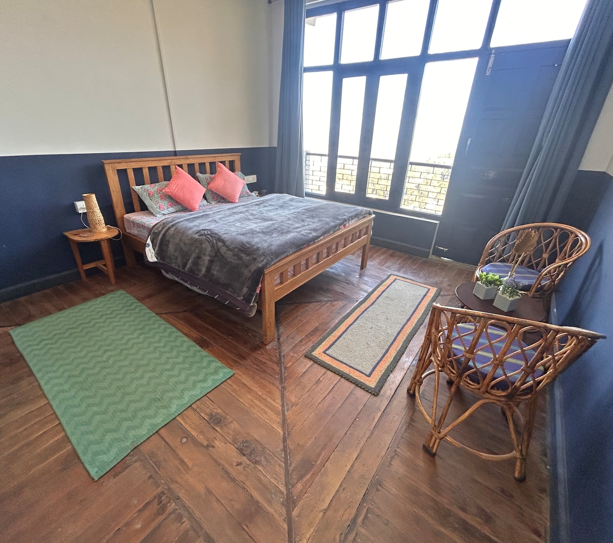 Cozy backpacker accommodation that shares premises with luxury resort property 2 snug double occupancy bedrooms with stunning views of the majestic Himalayas and a complimentary breakfast. Common Room with fireplace, cafe, reading nook, Pickle Ball court and Basketball hoops make this a perfect base or getaway for trekkers & hikers. Please note that price shown is for one bedroom with upto 2 guests. Contact us for help.