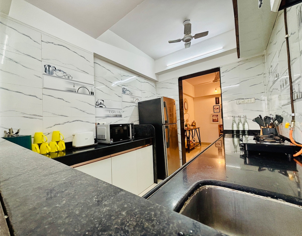 Esta casa longe de casa é um apartamento estúdio bem equipado para casais. O lugar é perfeito para turistas que procuram estadias curtas, bem como pessoas que procuram trabalhar em casa. O apartamento possui um backup de energia do gerador 24X7 e Wi-Fi de alta velocidade de 100 MBPS. A localização é central para a costa turística de Goa Norte e todas as praias são facilmente acessíveis dentro de 10-20 minutos de carro. Curta uma experiência elegante neste lugar bem-localizado.