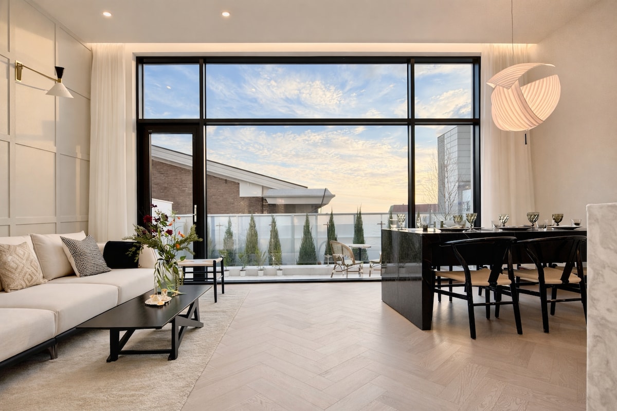 Vista panorâmica do rio, 4 quartos, roupa de cama de hotel, nascer do sol, 60 metros quadrados, 1 andar, máquina de lavar louça