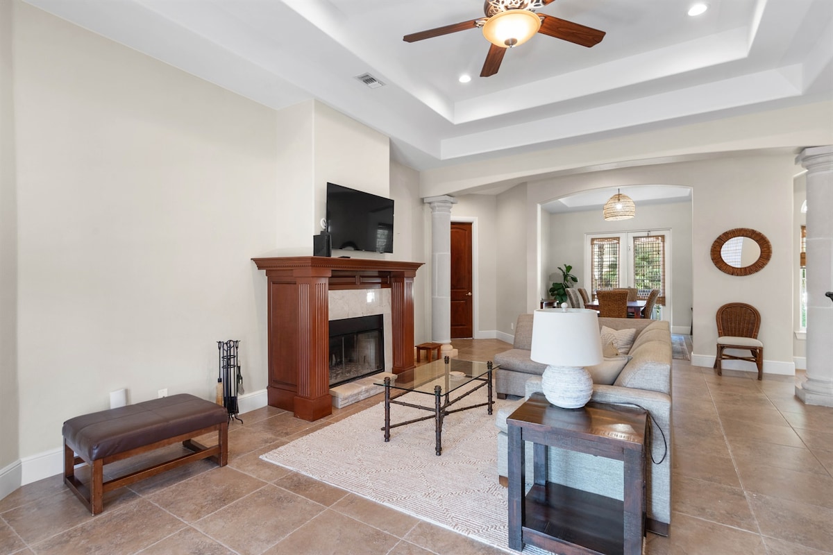 A meia quadra da praia, a nossa casa oferece comodidades incríveis. Ao ar livre encontrará uma piscina aquecida com uma cascata Dakota, uma banheira de hidromassagem, churrasqueira, lareira, espreguiçadeiras e chuveiro de exterior. Temos duas varandas e uma rede. A diversão não para por aí. O interior da casa é extremamente espaçoso e inclui uma sala de jogos, uma sala de estar com um sofá de grandes dimensões, uma enorme mesa de jantar, várias áreas de encontro isoladas em toda a casa e 3 televisões de ecrã grande. Feito para desfrutar em qualquer clima. Licença#2015-890603