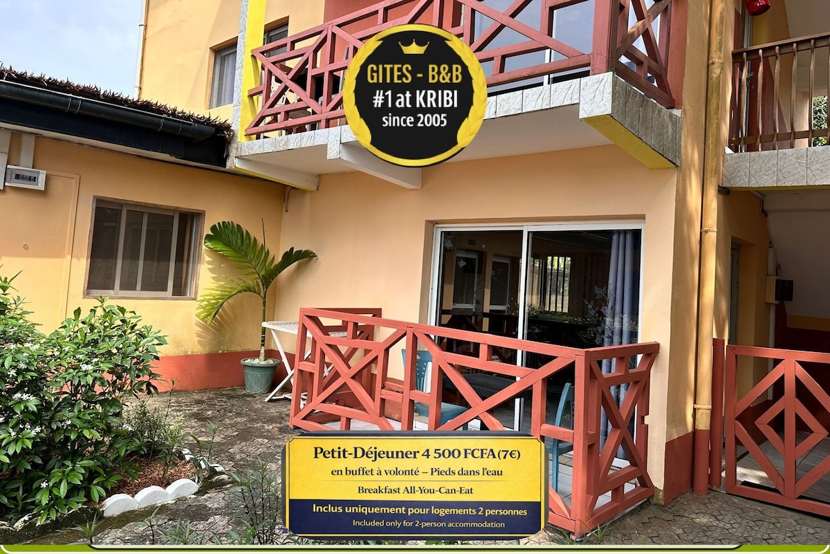 Casa espaçosa numa zona tranquila com um grande jardim, piscina acima do solo, trampolim, baloiço e zona de churrasco. Um estúdio independente integrado pode ser alugado sozinho ou com a casa. Graças ao poço e ao gerador, a água e a eletricidade são garantidas. De carro: - A 8 minutos da Praia de Kribi. - A 15 minutos de Lobe Falls, com a sua ilha e bela praia. - A 5 minutos do cais. (Localizado na orla da água, onde pode comprar peixe fresco).