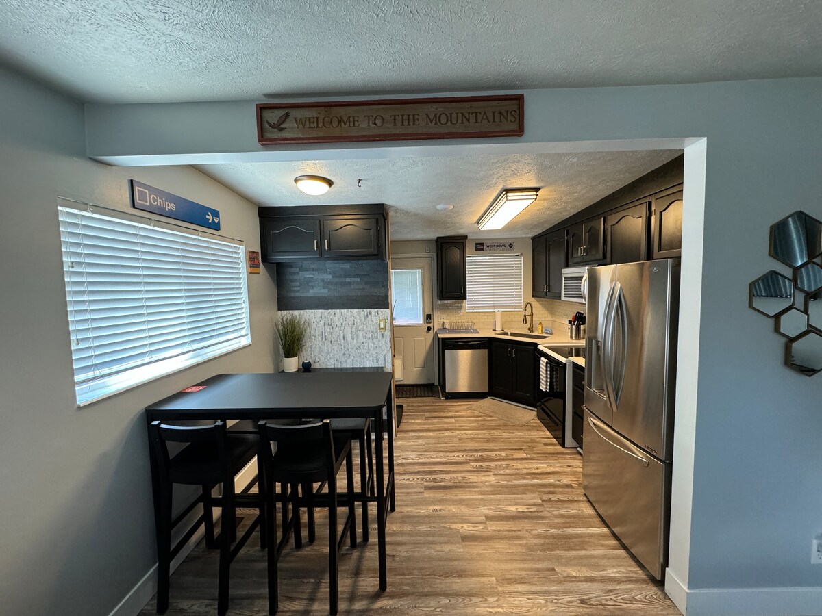 REFORMA RECENTE - inclui eletrodomésticos modernos COM SISTEMA DE FILTRO DE ÁGUA DE OSMOSE REVERSA! (confira as fotos) Lindo apartamento de 2 quartos em uma estrada e localização PRIVATIVAS. Uma cama queen size, uma cama king size. A água filtrada é GRATUITA. Beba tudo o que quiser. Funcionará muito bem para dois casais e uma pessoa no sofá ou qualquer outra combinação que os hóspedes acharem adequada. Entrada separada acima da garagem. Apenas 13 minutos do centro de Salt Lake City. Perto de esqui e caminhadas. Vista para as Montanhas Wasatch.