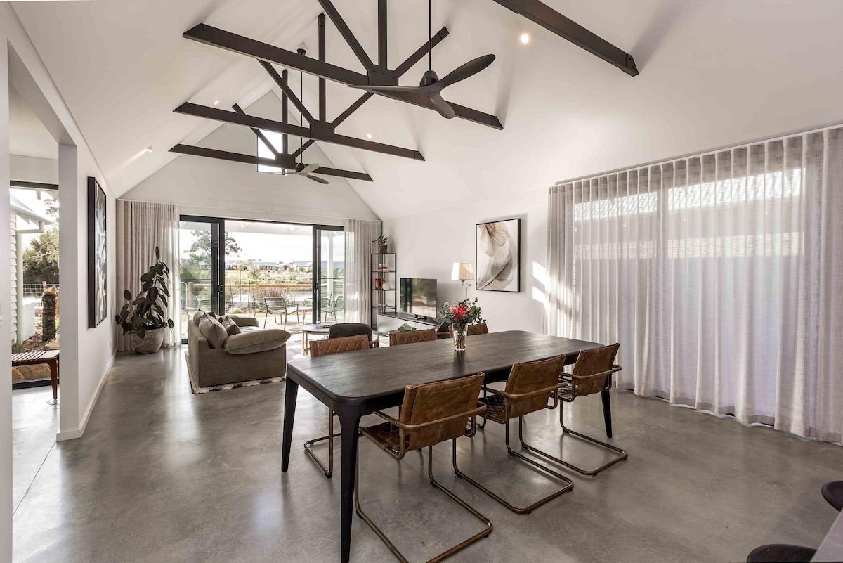 Linda moradia resort leve e luminosa numa localização imbatível no coração de Margaret River. Irá desfrutar de banhos na piscina, curtas caminhadas até à cidade ou parque de skate (para as crianças), comida fantástica no pub local ao lado... ou relaxar e desfrutar de vistas para os jardins e árvores lindamente conservados do lounge ou pátio do quintal. Se gosta de entreter, temos uma cozinha de tamanho completo repleta de facas de chef e utensílios de cozinha de qualidade. Perfeita para famílias e escapadelas para o sul com amigos.