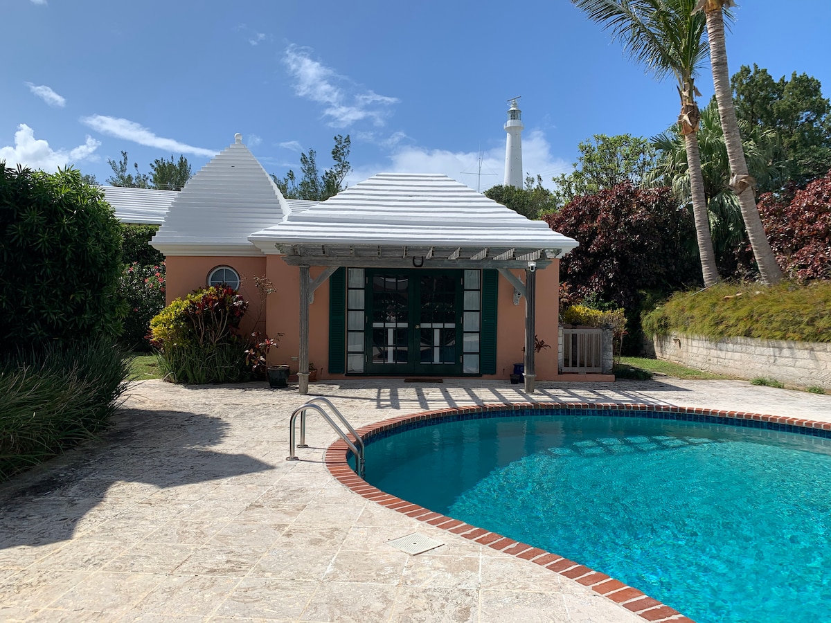A sua própria casa de piscina privada + torre numa propriedade exuberante de 5 hectares Sea Glass Cottage: classificado como o 6.º melhor Airbnb nas Bermudas pela Condé Nast e o 1.º lugar que não está mesmo à beira-mar Casa de piscina espaçosa de 130 m²: sala de estar em plano aberto + jantar com vigas expostas, tetos altos, quarto separado, com ar condicionado + cama queen confortável Cozinha bem abastecida com frigorífico de tamanho completo, churrasqueira Casa de banho atualizada, chuveiro walk-in. TV, máquina de lavar/secar, ventoinhas de teto, Wi-Fi dedicado A única coisa que vai partilhar? A piscina deslumbrante.