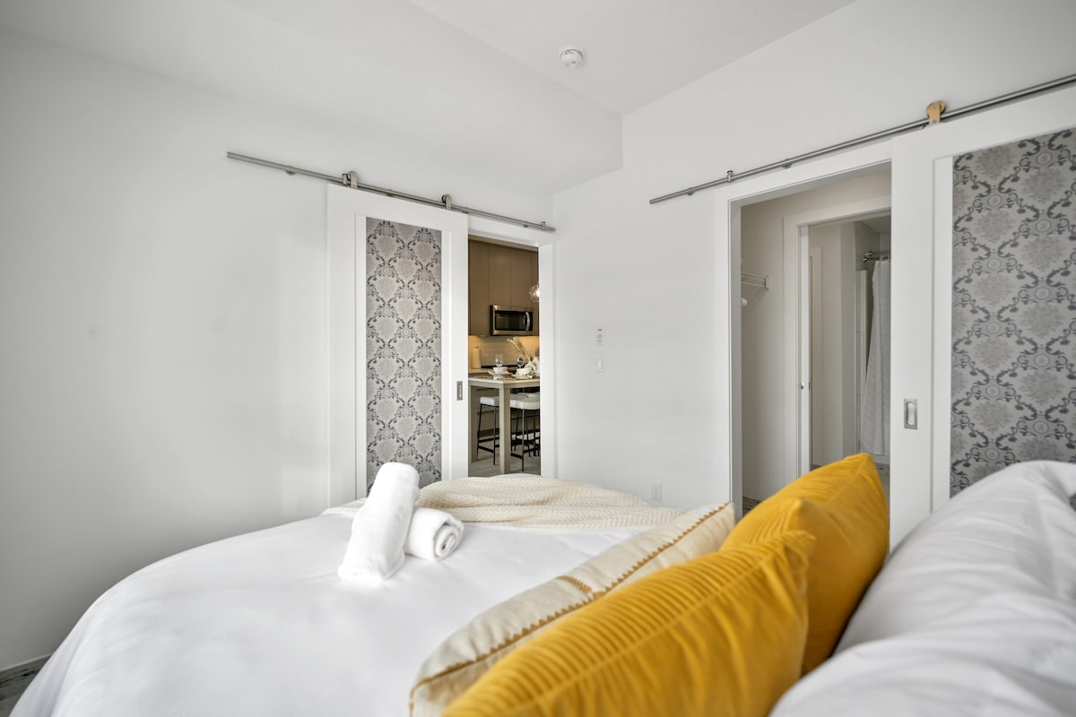 Localizado na moderna 4ª rua a uma curta distância a pé da avenida 17. Elegante 2 quartos 1 casa de banho 3 camas queen. Quarto principal, uma cama Murphy embutida no segundo quarto para ser usada como espaço de trabalho alternativamente. O sofá converte-se em cama queen na sala de estar. Cozinha totalmente abastecida com tudo o que pode precisar para a sua estadia. Estacionamento subterrâneo aquecido Wi-Fi Premium, TV e Netflix. Varanda com vista para o centro da cidade. Licença comercial # BL292056