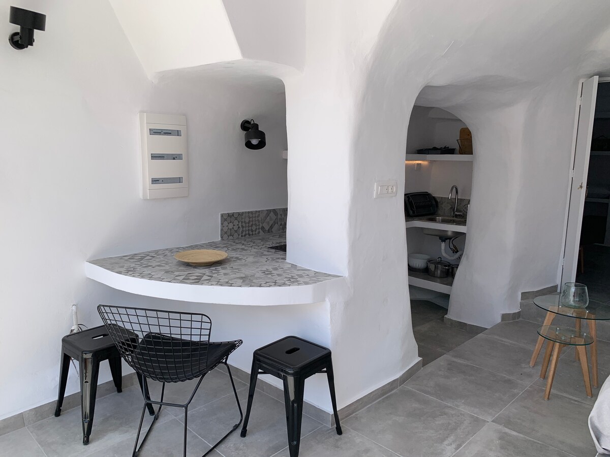 Sinta a experiência de uma casa de caverna tradicional em um bairro tranquilo e gráfico da Aldeia Akrotiri localizado a curta distância do Castelo Akrotiri e do Centro da Aldeia. As cavernas estão a oferecer uma sensação relaxante e pacífica durante a sua estadia de frente para a magnífica vista da Caldeira. Renovado em 2019 mantendo a forma tradicional de arquitetura e a sensação única de energia geotérmica.