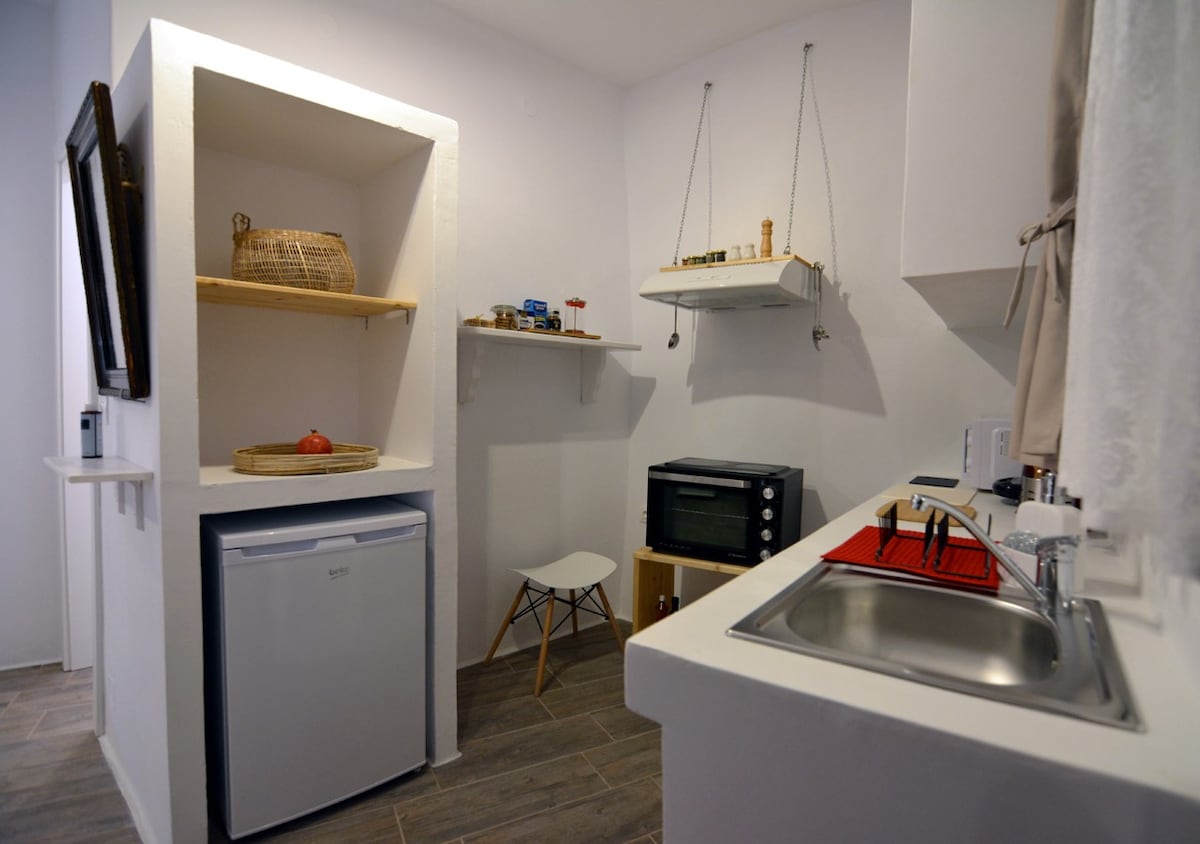 Situated within an estate of 500m2 in the picturesque village of Plakes you will find the stone house of “Kalimerena“. A small (35m2) functional and very quiet house, away from the noise, very close to the capital of Plaka (a 5 minute walk) and the centre of the island. Built at the beginning of the 20th century out of stone the house was recently renovated and combines a traditional atmosphere with the comfort of a modern and simple decoration.