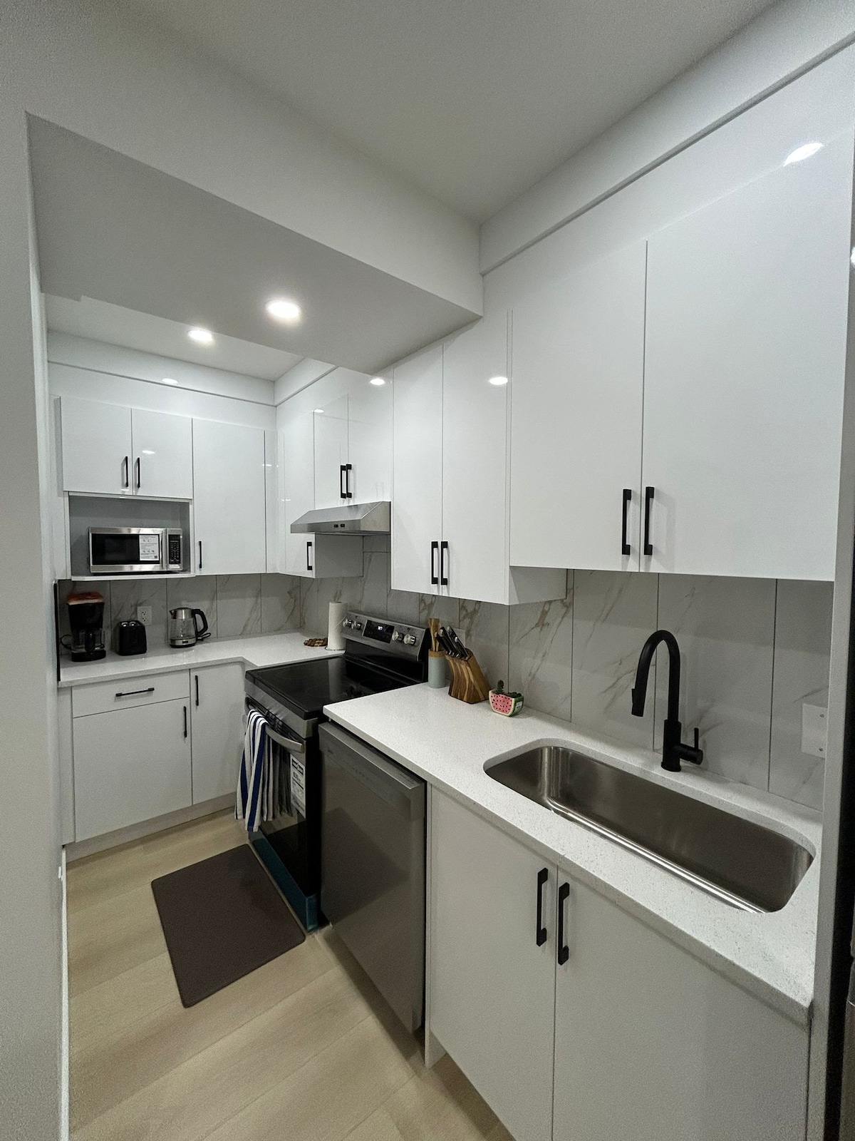 Suíte recém-construída no subsolo com acesso a passarela recreativa/área úmida. A 10 minutos do Aeroporto Internacional de Calgary YYC. Vem com dois quartos com móveis modernos, área de estar, cozinha completa, máquina de lavar e secar roupa e banheiro completo. Localizado no NE Calgary, a 3 minutos de supermercados, restaurantes e pizzarias e a 10 minutos do shopping Crossiron, centro de lazer Genesis, estação de trem Saddletowne. Ótima localização com acesso rápido a Banff, Canmore, Kananaskis, Lagos e Montanhas através da estrada circular.