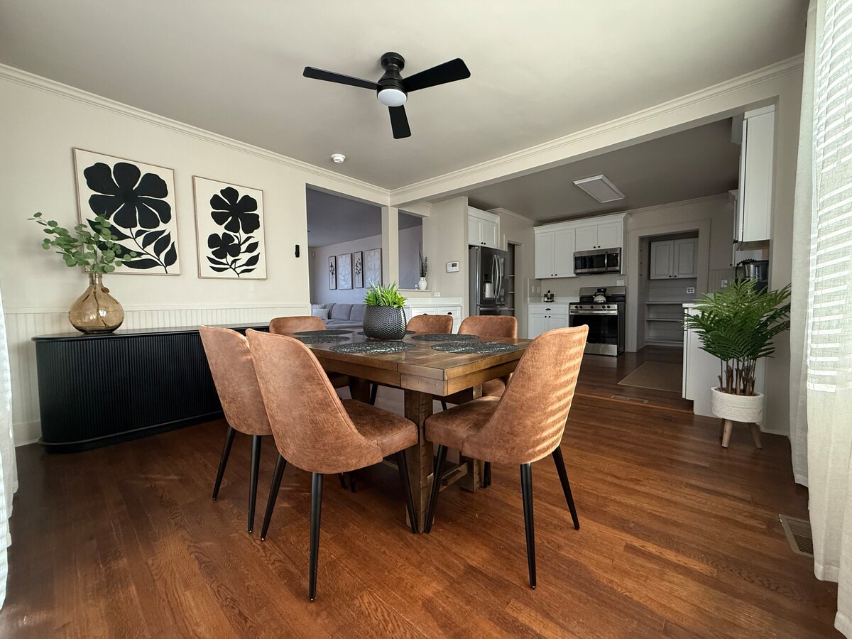 Fique em grande estilo na nossa colorida casa de 2 quartos dos anos 30, a uma curta distância a pé do centro da cidade. Relaxe junto à lareira interior ou faça streaming com Wi-Fi rápido. Comodidades Cozinha completa com café. Máquina de lavar/secar Lareira (toros do tipo duraflame - não fornecidos) Pátio/quintal partilhado Estacionamento gratuito no local Tem uma casa de banho de serviço no piso de baixo e uma completa no de cima. Quartos Queen Completo Além de dois futons de tamanho completo em LR/Den Máquina de lavar/secar roupa na cave