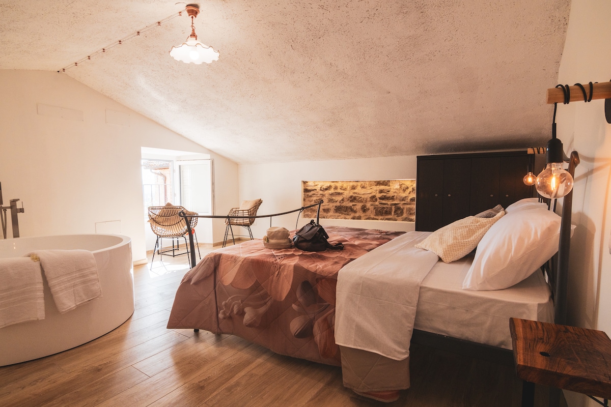 Um refúgio encantador no coração de Spello. Uma vista panorâmica maravilhosa e uma gruta exclusiva esperam por si. Relaxe no pátio privado com banheira de hidromassagem aquecida enquanto admira as vistas deslumbrantes da Úmbria. No interior, o calor da lareira e o conforto esperam por si, mas a verdadeira pérola é o acesso direto à sua gruta de bem-estar privada e exclusiva, completa com sauna e segunda banheira de hidromassagem com cromoterapia. Perfeito para uma escapadela romântica ou relaxamento profundo.