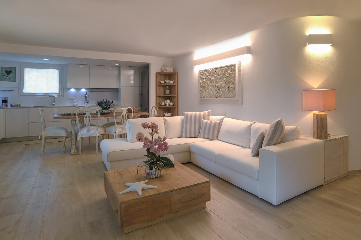 O nosso acolhedor apartamento tem uma entrada independente do jardim verde partilhado e dispõe de uma grande varanda sombreada com vista deslumbrante para o mar. Belas praias de areia branca, águas cristalinas e paisagens de cortar a respiração estão a poucos passos de distância. Localizado numa residência tranquila com um jardim florido encantador, oferece um ambiente familiar e acesso pedonal à praia. Há estacionamento gratuito no interior.
