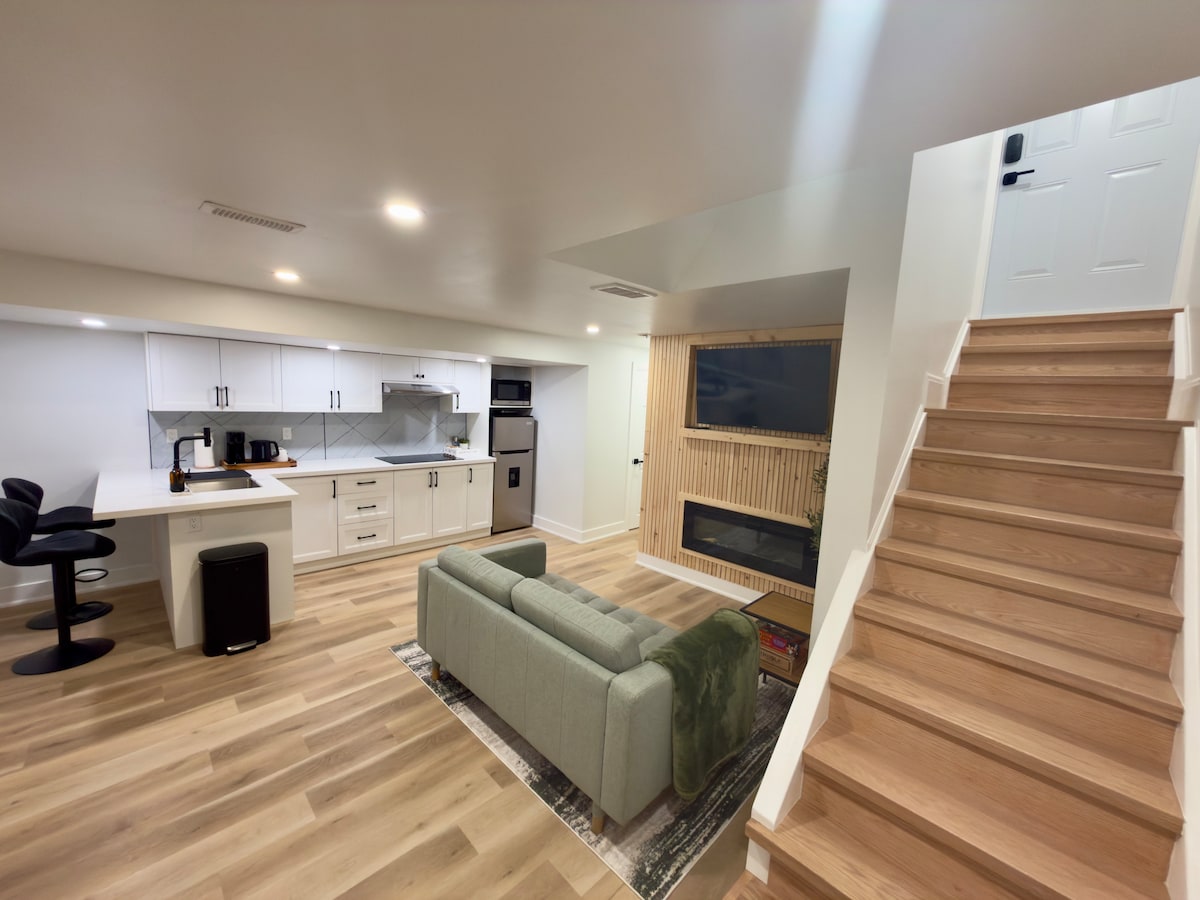 Damos-lhe as boas-vindas ao The Hideout – a sua escapadela aconchegante no jardim 🌿✨ O Hideout é uma elegante suite de um quarto e uma casa de banho com jardim, concebida para conforto e relaxamento. Decorado com tons suaves de azul e castanho quente, com detalhes elegantes em dourado, este refúgio convidativo combina sofisticação moderna com uma atmosfera acolhedora e caseira. Quer esteja aqui para uma escapadela de fim de semana ou para uma estadia curta, o The Hideout está perfeitamente situado a poucos minutos do centro da cidade de Barrie, da orla marítima e das atrações locais.