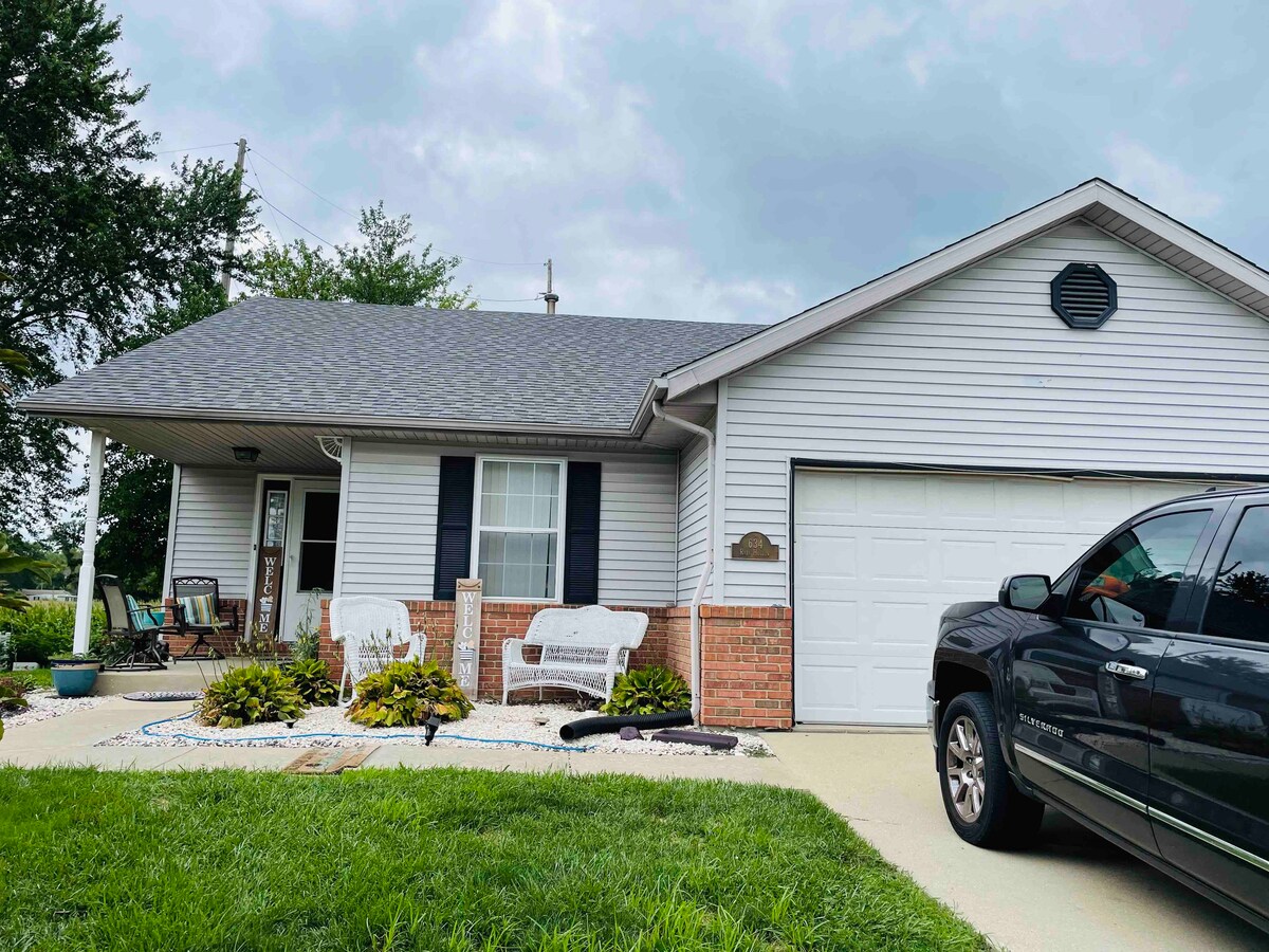 Venha apreciar a natureza em uma fazenda rural! Você ficará em uma casa de fazenda de tijolos caseira com uma cozinha totalmente equipada perfeita para fazer uma refeição em família (utensílios, panelas, frigideiras, torradeira, cafeteira dupla, panela de louça, etc.). A casa inclui uma aconchegante sala de estar com lareira elétrica e TV smart de 52 polegadas, três quartos, 2,5 banheiros e uma área de jantar! Relaxe na nova banheira de hidromassagem para 6 pessoas e aproveite as estrelas e o ar fresco.