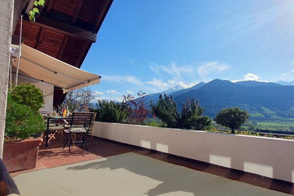 O apartamento de 5,5 quartos está localizado perto de uma adega e está numa localização muito rural. Do terraço da varanda, pode desfrutar da vista fantástica da Bündner Herrschaft. Está disponível um espaço de estacionamento exterior gratuito. Tamanho total do apartamento de férias 160 m2 Quarto: quatro quartos com três camas de casal e duas camas de solteiro. Casa de banho: duas casas de banho com banheira, chuveiro e sanita. Sala de estar Uma área de jantar e de estar aberta com uma mesa de jantar, um sofá-cama e uma televisão. Cozinha A cozinha