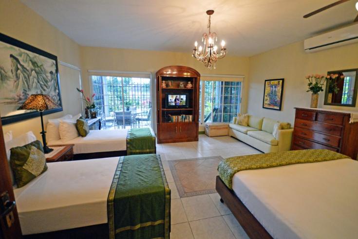 Estúdio de Villa de Lua de Mel com excelentes comodidades. Consiste em um Cama king grande e confortável terraço com piscina Wi-Fi Netflix água quente e fria máquina de lavar roupa com mesa de jantar com sofá lavar a máquina de lavar a casa de banho dele e dela closet em pó Espaço de jardim com piscina sem partilha de comodidades comodidades de cozinha, microondas e torradeira bar reggae Beach 2,3 km prazer Covebeach 4,3 km rio branco 4,3 km buraco azul 4,3 km praia de magohany7km ochi Rios centro da cidade 8 km Imposto de Transporte - $ 1,50USd Aluguer de Carros - $ 80USD +